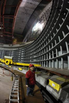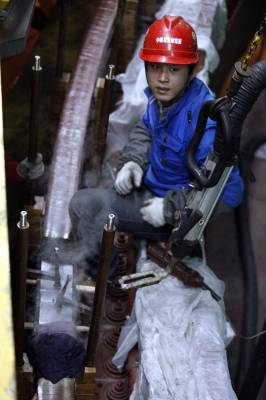 三峡地下电站进入机组安装2011年1月2日,工人在三峡地下电站5号发电机组安装定子汇流环。三峡地下电站主厂房土建施工胜利完工后,全面转入发电机组安装。三峡地下电站设计安装6台70万千瓦混流式水轮发电机组。计划2011年将有3台机组投产发电。文振效