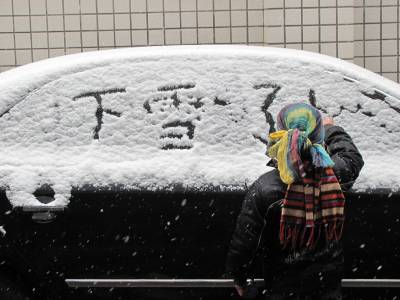 1月2日,一小朋友在湖北省十堰市六堰街落满雪花的轿车上写字。当日,十堰市迎来新年首场降雪,许多市民纷纷走出家门,赏雪、拍照,亲近大自然,共享美丽雪景。