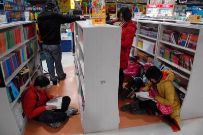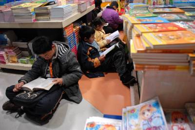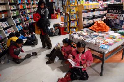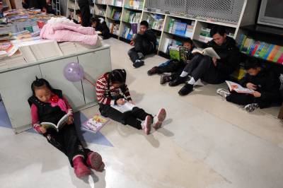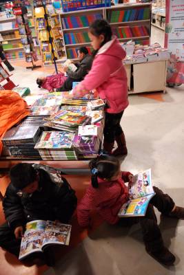 2011年1月3日,武汉光谷图书城,50多个孩子在家长的陪同下,在儿童读物处看书、购书。据图书城员工介绍,节日期间,儿童来书城人数激增,儿童读物走俏。