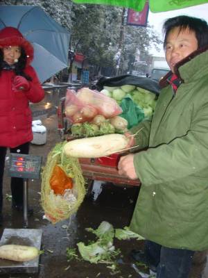 图片报道:下雪了,蔬菜俏元月2日,虽然下了一场大雪,道路又出现了结冰打滑现象,但汉川市麻河镇区蔬菜的产、供、销却环环相扣,非常俏销。图为当日该镇菜市场一景。签约摄影师邹开建摄通联:汉川市麻河镇党政办公室电话:13197382491