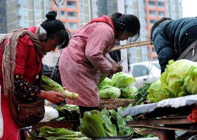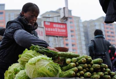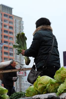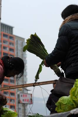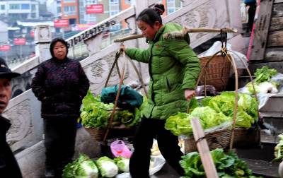 5日,宣恩县城一农贸市场,菜农在整理刚出地里采摘的蔬菜准备出售。自元旦开始的冰雪天气,致我国南方多条交通干道结冰,蔬菜运输较困难。当地菜农冒冰雪采收蔬菜供应市场,确保了当地蔬菜价格基本稳定。本报视界网宋文摄