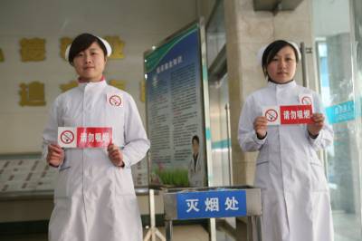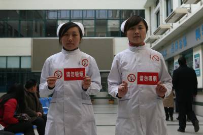 随着禁烟承诺日期的临近,湖北省襄阳市第一人民医院成立了一支由近十名工作人员组成的医院控烟劝阻队伍,通过院内不间断巡视和友好提醒,向患者及家属宣传普及相关戒烟等知识,做好门诊大厅、住院部等公共医疗场所的控烟工作,减少烟草对人们健康的危害。据了解,按照中国政府于2003年11月与世界卫生组织签署的《烟草控制框架公约》,自2011年1月9日起,中国将在所有室内公共场所、室内工作场所、公共交通工具和其他可能的室外公共场所实现100%禁烟。