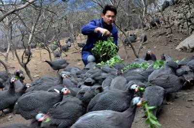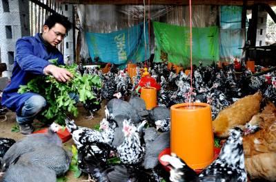 ”鸡司令”圆创业梦1月9日,恩施市红土乡兴农特种养殖场张雪松正在给珍珠鸡添加萝卜菜。2010年3月,张雪松不顾家人反对辞去在外地的工作回到家乡创业,投资10万多元,采用散养方法和科学化管理发展珍珠鸡、贵姬鸡等特种养殖。目前,不到一年时间,他已成为当地的养殖大户,并带动周边农户致富。据张雪松介绍,下一步他打算进一步扩大养殖规模,发展养殖专业合作社,带动更多农户依靠科学养鸡走上致富路。(视界网彭绍峰摄)红土乡政府13329820218