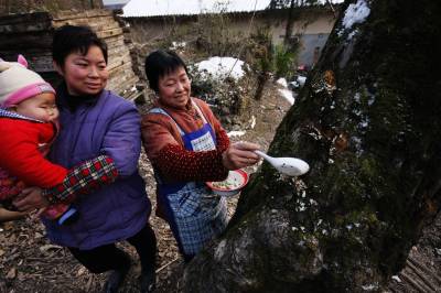 又是一年腊八节1月10日,竹山县深河乡井泉村4组村民刘德凤用腊八饭喂核桃树。1月11日(农历十二月初八),是我国的传统节日”腊八节”。这一天,我国民间有吃腊八饭、用腊八饭喂果树的习俗,祈求来年风调雨顺、五谷丰登。(本报视界网章磊摄)地址:竹山县交通局章磊电话:15972574118