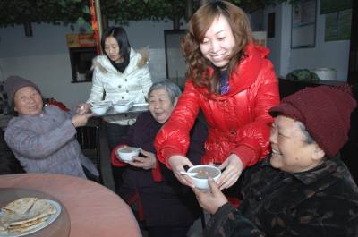 品腊八 倡和谐 在中国传统腊八节到来之际,1月10日,襄阳市劳动街社区”好婆媳协会”的”好媳妇”们,将一碗碗热气腾腾的”腊八粥”端给社区”婆婆”们品尝。当日,该社区邀请来社区空巢婆婆和协会婆媳会员们一道,共同制作品尝”腊八粥”,让社区和谐美满的新年味道更浓些。
