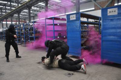 恩施一加油站遭遇”抢劫”特警21分钟将歹徒”擒获”1月10日上午,恩施城区一加油站遭遇两名歹徒持枪抢劫,21分钟后,特警将两名歹徒擒获。当日上午10点整, 两名歹徒持枪蒙面进入恩施城区学院路金轮加油站,强制控制该站工作人员,暴力实施抢劫,将现金和保险柜内贵重物品抢走后,在站外拦截一辆出租车向金桂大道(通往火车站和高速公路入口)逃窜。恩施市公安局110指挥中心接到报警后,迅速指令特警大队出动追捕,同时向湖北伊爱科技公司通报了出租车牌照,该公司当即对该出租车进行断油、断电处置。车上的歹徒并不知道出租车被遥控,只以为是出了故障,便弃车逃进金桂大道旁的山泰公司仓库。随后赶到的特警冲进仓库,施放催泪弹,将其制服。两名从抢劫到被擒获,整个过程仅持续了21分钟,赢得围观群众连声叫好。恩施市公安局负责人告诉记者,1月10日是全国110集中宣传活动日,这是该局充分发挥110报警系统多警种作战及社会联动作用,针对年末岁初”两抢一盗”案件高发的严峻态势,而开展的一次多警种作战的防抢劫模拟应急实战演练。本报视界网周光兵摄