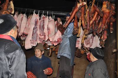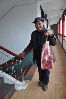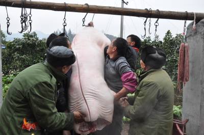福利院里幸福年1月10日,宣恩县李家河乡福利院宰杀了4头大肥猪、共700公斤白肉,让院民过上幸福年。(图一)院民高兴地帮忙宰猪;(图二)院民挑送刚宰杀的猪肉;(图三)为让院民长年能天天吃上猪肉,福利院已宰杀了13头大肥猪,近2000公斤白肉炕成土腊肉,图为院民在挂炕猪肉;(图四)参加吃刨汤的常务副乡长郑大好为每个院民发一个红包。(本报视界网陈开银)联系:宣恩县李家河乡政府陈开银电话:15027217539