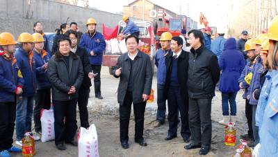 2011年黄石市工会新春送温暖活动昨启动10日,2011年黄石市工会新春送温暖活动开始启动。据了解,该市总工会计划安排使用资金437.98万元,在两节期间,发放给全市的困难企业和困难职工。今年的活动主题是:”心系职工情,温暖进万家”,活动内容包括送救济、送健康、送平安、送文化等,按每个家庭不低于300元的标准,为8000个困难职工家庭送救助救济款物。同时走访慰问困难企业、劳动模范和特困职工家庭。图为市委常委、纪委书记、总工会主席陈金刚(中)率市总工会领导班子部分成员对在十五冶公司谈山立交桥项目部的农民工送上了食用油和大米等慰问物资,并送出了新春祝福。黄石市黄石日报摄影部邱孝威通讯员皮明杰摄电话:13807232603邮编:435002