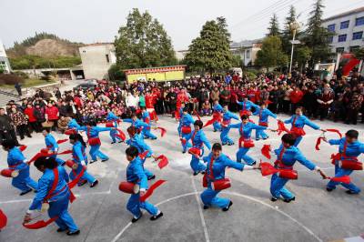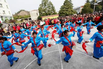 丰收腰鼓敲起来昨日,点军区联棚乡女子腰鼓队走进乡广场,用喜庆的腰鼓为居民送去祝福。新春到来,宜昌各地处处响起丰收的锣鼓声,一支支来自基层的表演队伍,走街穿巷,为当地居民送去新春喜悦。本报视界网黄翔摄