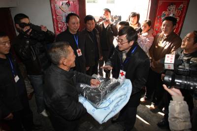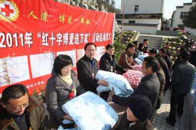 前日(11日),由十堰市红十字会举办的2011年度”红十字博爱送万家”活动启动仪式在竹山县隆重举行。新春佳节即将来临之际,该市红十字会在社会各界的热心支持下,组织价值120万元的爱心款和爱心物资,并通过十堰市红十字会2011年度”红十字博爱送万家”活动,将这批慰问物资发放到全市9个县(市、区)4000余户、12000余名最需要帮助的困难群众手中。今年”红十字博爱送万家”活动筹集的款物主要包括在中国红十字会、湖北省红十字会以及市直机关各单位和爱心企业的大力支持下,再次筹措到了价值的大米、食用油、棉被、衣物、奶粉、药品等生活必须品,总价值120万元。(本报视界网徐雁初、刘珊珊摄)