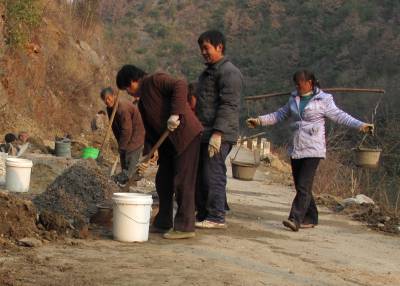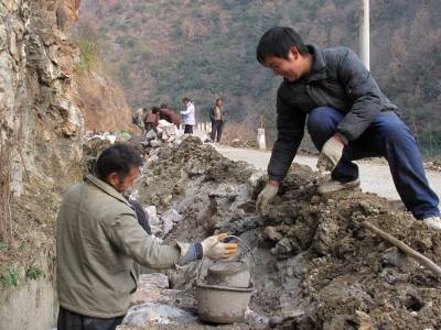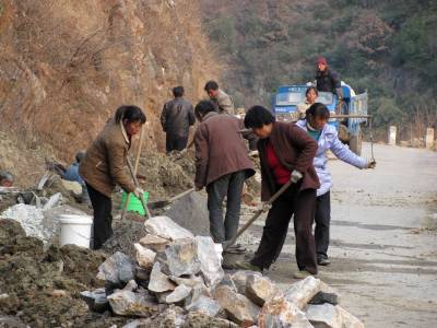 2011年1月11日,湖北郧县刘洞镇江峪村村民正在修建引水渠。为补充耕地面积,提高土地利用率,确保田地旱涝保收,今年县水利局为该镇投资1100万元用于低丘岗地改造、引水渠修建。(湖北郧县新闻宣传中心曹忠宏张鑫摄邮编442500)