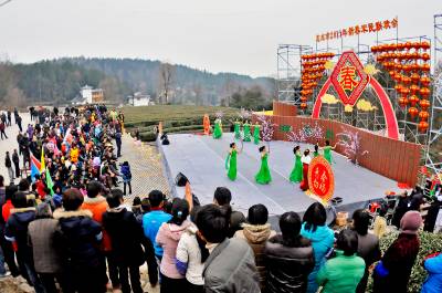 ”湖北恩施好地方,山河秀美茶花香;民族文化源流畅,人间仙境美名扬”。群口快板《仙居恩施》唱响了欢乐的舞台,点燃了观众的激情。1月13日,恩施市白杨坪乡洞下槽村生态茶园里,锣鼓喧天,热闹非凡,以新农村美景为背景,以茶园为舞台的”恩施市2011年新春军民联欢会”在这里举行。2010年,恩施市在半年农村工作会上提出了打造”仙居恩施”、建设八大生态走廊的战略构想。为落实会议精神,白杨坪乡充分利用洞下槽村茶园面积广、又是灯戏故乡的优势,沿熊家岩——洞下槽——朝阳坡沿线,将新农村建设与茶叶产业、灯戏文化融为一体,大力建设生态茶园,积极发展城郊休闲旅游。为了让文艺演出走入群众,和老百姓的生活融为一体,恩施市把2011年的新春大联欢活动定在了这个村。 当天,恩施市民族文工团、恩施军分区、恩施市消防支队、恩施市乐老艺术团等多家单位为白杨人民送来了一台精彩文艺大餐。