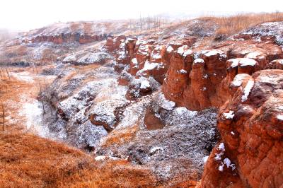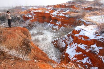 丹霞地貌现湖北随州(1月18日摄)1月18日拍摄于随州经济开发区淅河镇沙河村和寨湾村地质带上丹霞地貌。深深的峡谷、型态各异的奇石这一独特的地质奇观,长约10公里,让人仿佛进入茫茫戈壁。目前,随州市组织有关专家对当地新发现的丹霞地貌地质奇观进行了实地考察。据介绍,丹霞地貌是一种特殊的红层地貌,通常是一些远古红色砂岩经长期风化剥离和流水侵蚀后,形成的孤立山峰和陡峭的奇岩怪石等。本报视界网杨文明摄