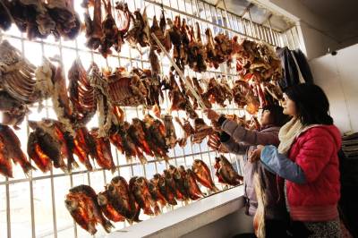 又到腊肉飘香时1月19日,竹山县城关镇明清村张吉林一家在凉挂腊肉。冬季,竹山县乡村有腌制腊肉的习俗,人们把鲜肉(或鱼)经五香粉拌合的盐渍后,挂在通风处阴干,其味喷香,肥而不腻,百吃不厌。随着新年的临近,又到了家家户户灌香肠、腌腊肉,准备年货的时候。这些民风民俗与浓浓的年味融为一体,成为冬季一道诱人的风景。(本报世界网章磊摄)地址:竹山县交通局章磊电话:15972574118