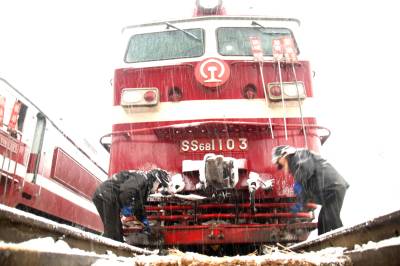 精检细修保春运安全 1月18日,武铁襄樊北机务段职工冒雪对即将出发的电力机车进行整备。春运来临,机务段方面除完善各项安全运输预案外,还积极组织检修和技术人员对投入春运的150台机车做到精检细修,消除设备隐患,杜绝机车带”病”上线,为春运安全运输奠定扎实基础。襄阳市高新区车站路2号襄北机务段熊德明邮编441058