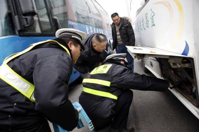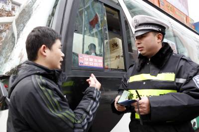 春运安全重如山2011年1月19日,交通民警在宜昌市长途汽车站出口检查车辆安全。春运第一天,湖北省宜昌市交警支队调集1300多人上路,引导车辆通过高山冰雪路段,疏导维护交通秩序,确保春运安全。文振效