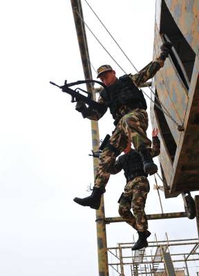 2011年1月19日,担负反恐尖兵的武警湖北省总队某部官兵,冒着严寒,苦练反恐本领。