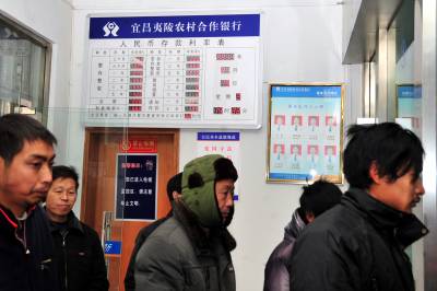 2011年1月19日,村民在湖北省宜昌市夷陵农村合作银行鄢家河分理处办理小额贷款业务。1月初,湖北省农村信用社公布数据显示,至2010年底全省农信社涉农贷款余额突破900亿元,达到903亿元,增幅比全部贷款增幅高7.27个百分点,增量比上年同期高83亿元、3.83个百分点。全年完成了6个金融空白乡镇网点增设工作,实现农信社对乡镇金融服务全覆盖。本报视界网张国荣摄