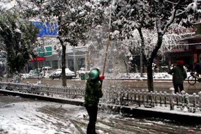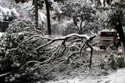 1月20日凌晨开始鄂州再次强降大雪,到10时路面积雪已达20厘米,城区不少大树被大雪压断。