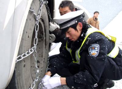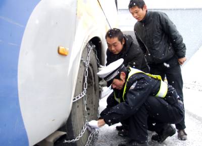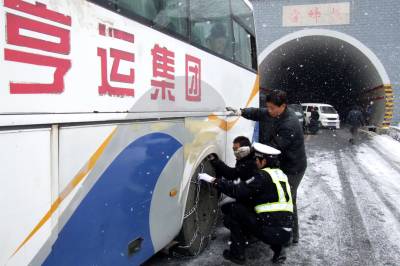 1月20日,郧县交警冒雪正在209国道雷峰垭路段为客车安装车轮防滑链。当日是春运第二天,郧县大范围普降瑞雪,209国道雷峰垭路段等多条路段因冰雪封路,给正值高峰的春运带来极大压力。为应对又一轮降雪降温天气,郧县紧急部署,迅速启动应急预案,加强道路和车辆管控,全力以赴确保春运安全畅通。程复华摄442500郧县国税局