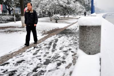 2011年1月19日白天至夜间,湖北省宜昌市各地被飘飞的雪花装点成了一片银装素裹的世界,持续降雪和低温造成了部分地区积雪冰冻,夷陵区、秭归两个北部县市区和宜都、枝江两个南部县市的最低气温都跌到了0℃以下,远安、长阳、五峰等山区县市极端低温达到-8℃。当日,宜昌各地积极做好防范雪灾和冻害的应急工作,交通、铁路、电力、通信等相关部门加强道路、铁路、线路巡查维护,确保了群众正常出行和生产生活不受影响。本报视界网张国荣摄