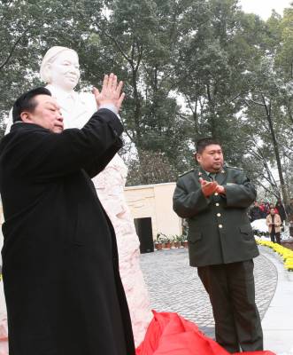 我县隆重举行革命老人张文秋纪念雕塑揭幕仪式毛泽东之孙、少将毛新宇 全国政协提案委员会副主任王生铁亲自为雕塑揭幕1月20日,寒风凛冽,一场大雪将整个京山县城笼罩在洁白之中。在新建落成的文峰公园里,张文秋陵园装修一新,革命老人的纪念雕塑揭幕仪式在此隆重举行。大家共同追忆张老的传奇革命生涯,共同缅怀她的革命精神和崇高风范。全国政协委员、国家军事科学院战争理论和战略研究部副部长、少将,全国青联常委(毛泽东孙子、张文秋外孙)毛新宇和全国政协提案委员会副主任、原省政协主席王生铁亲自为张文秋雕塑揭幕。参加揭幕仪式的还有张文秋女婿李天策、张文秋女儿张少林、荆门市委书记王玲、市长万勇,荆门军分区司令员邱明杨、市政协副主席叶中章以及京山县委书记郑香元、县长胡小国等。仪式由县委副书记、县长胡小国主持,县委书记郑香元发表讲话,他代表京山县委、县人大、县政府、县政协和全县64万人民,对张文秋老人表示最深切的怀念!向不辞万里回到故乡的张少林女士等张老的亲属表示诚挚的问候!向参加揭幕仪式的各位领导、各位来宾表示热烈的欢迎和衷心的感谢!他指出,张文秋是从京山走出去的一位革命老人,在80多年的革命生涯中,树立了坚定的共产主义信念,铸就了坚强的革命意志,养成了优秀的人生品格,充分展现了一位女先锋战士坚强不息的奋战精神,始终保持了一名优秀共产党员的良好形象。张文秋老人对家乡怀着深厚的故乡之情,多次回乡探访,慰问,关心支持家乡的建设和发展。京山人民也没有辜负张老的殷切希望,全面圆满完成了”十一五”各项目标任务,全县呈现出团结拼搏、加快发展、和谐崛起的良好局面,正满怀豪情和自信,向建设国家生态县的目标奋勇前行。市委书记王玲也发表了讲话,她号召全市人民以这次纪念活动为契机,进一步继承和发扬张老的革命精神、高尚品德和优良作风,坚定信念,开拓进取,振奋精神,奋力推动经济社会又好又快发展。毛泽东孙子、张文秋外孙、少将毛新宇也在揭幕仪式上深情缅怀了与外婆一起生活的日子,然后又参观了位于京山县博物馆的张文秋纪念馆,看到一幅幅张老从京山一直到北京的革命历程的照片,抚摸着一件件张老生前遗留的衣物、桌椅,毛新宇十分感动京山人民为张老所作的一切。(张文胜)