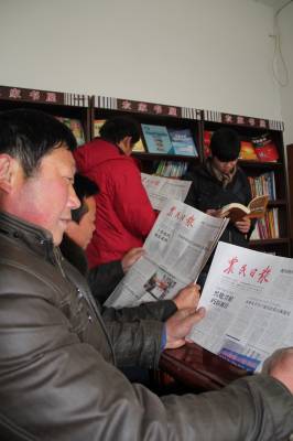谷城农民农家书屋忙”充电”1月21日,谷城县冷集镇双阳桥村农民正在农家书屋学习《农民日报》等。近几年,谷城县270多个村建有”农家书屋”238个。书屋内充裕的报刊、书籍、电子影像制品为农民学科技、长技术提供了便利,加快了农民用知识致富的步伐,很爱农民欢迎。谷城县农信社马明刚摄邮编441700电话13094124232