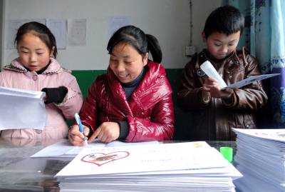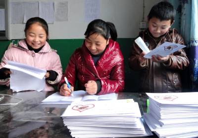 郧县学生期末成绩寄到家21日上午,郧县刘洞镇九年一贯制学校的徐秋芬老师正在填写学生的期末考试成绩单。为了不让学生在因年关临近而变得日渐繁忙的道路上行走,确保学生度过一个平安快乐的寒假,郧县教育局倡导全县各学校今年将通过邮寄的方式,把学生的成绩单和致学生家长的一封信送到学生和学生家长的手中。(郧县刘洞镇九年一贯制学校高超/摄邮编442525)