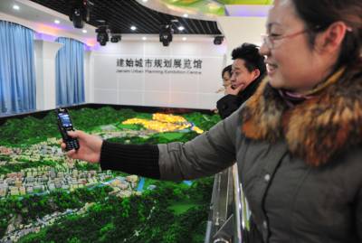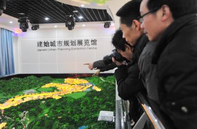”未来的山地宜居城市好漂亮!”本报视界网刘波1月19日,市民参观建始县城市规划电子沙盘模型。按照建始县城市发展规划,该县将积极探索山地城市发展规律,凸显”山、林、河、城”特色,到2020年,该县中心城区将将变成现在的10倍,扩大到50平方公里,一举成为恩施州内山地宜居城市。建始新闻中心刘波联系电话13032794298