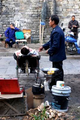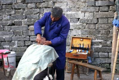 剃头匠剃头匠这一行当,如今在大都市里,演变成发艺﹑发廊,成为现代人时尚的代名词。那种肩担剃头挑子,走街串巷吆喝的剃头匠,在城里早已见不到那踪影了。在湖北荆州古城的城南,有着如今在大都市见不到的剃头匠们。他们依靠着那古老的城墙,一把剃头椅及简单的剃头工具,就双手在客人的头上飞舞。剪发﹑洗头﹑修面﹑刮胡﹑掏耳及按摩,一套流程下来,客人花三﹑五块钱,满意而去。不论晴雨刮风,剃头匠们都在那厚重的城墙下,静静地等候客人的到来。年轻人大都不会来这里剃头,来这里剃头的人大都是和剃头匠们年龄不相上下的中老年人。他们有着知音,有着说不完的话题,有着在现代发廊里享受不到的快乐和惬意!虽然剃头的地方简陋,环境卫生都不尽人意,躺在剃头椅上,望着蓝天,望着那破旧的城墙,望着剃头匠那双舞动的双手,心里燃起更多的是儿时的记忆。燃起更多的…