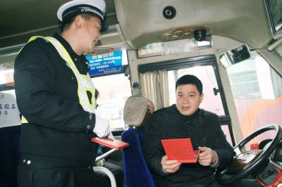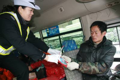 2011年1月21日,湖北省南漳县交警大队的一名女交警,在客车上展示她们精心制作的”安全乘车须知”光盘,再次免费向司机发放。从2011年1月18日开始,三天来,湖北省南漳县公安局交警大队民警,将他们专门录制了一盘以防盗、防抢、防骗、防火和防安全事故为主要内容的”安全乘车须知”宣传光盘,免费向300多名司机发放,并利用车载电视系统在全县所有客车上滚动播放。这张8分多钟片长的安全乘车宣传光盘,采用卡通、三维动画、实景模拟和特技运用等手段录制而成。内容生动、丰富,涵盖文明乘车规定、车辆发生火灾后的逃生技巧、以及防盗、防抢、防骗和防交通事故的处置方法。通过播放光碟,以提高乘车人的安全防范意识,最大限度地保护乘客的利益,确保春运安全。南漳交警精心制作、免费发放光盘,宣传乘车安全的做法,深受客车司机和乘客的好评,中央电视台在新闻频道《朝闻天下》(http://news.cntv.cn/china/20110120/100719.shtml)和《新闻直播间》(http://news.cntv.cn/china/20110121/105633.shtml)等栏目,及时予以报道。