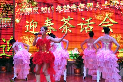 2011年1月21日晚,湖北省宜昌市夷陵区举行迎春茶话会,各界人士欢聚一堂,畅叙友情,共谋发展大计,并一起观赏了精彩的文艺节目,共迎兔年新春佳节到来。本报视界网张国荣摄
