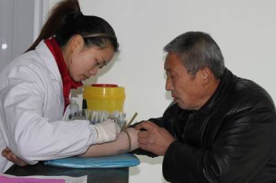 湖北省竹溪县水坪镇中心卫生院十分关心退休职工,在春节前夕,他们对老同志们的身体健康指标进行了检查,主要进行了血压测量、心电图、腹部彩超、胸部透视等项目检查,尽量做到及早发现疾病和预防疾病。图为医生在给老同志进行抽血化验的镜头。地址:湖北省竹溪县电视台沈耀武罗强富摄邮编:442300电话:13886801618