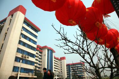 1月23日,鄂州在公园、游乐广场等公共场所挂上大大的红灯笼,迎接新年的到来。