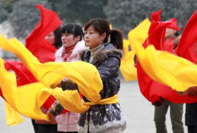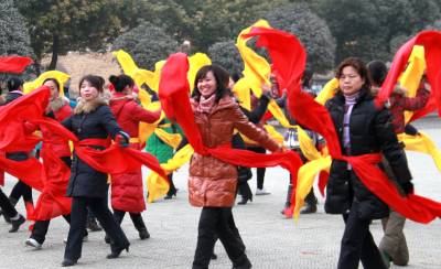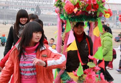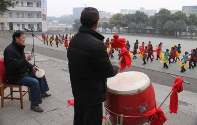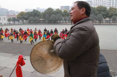 2011年1月22日下午,湖北省十堰市郧县城关镇居民正在该县体育场排练彩船节目。春节前后,该县将举办阵容强大的闹新春彩船、秧歌、腰鼓大拜年活动,目前各相关部门正加紧排练节目。