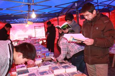 1月23日,孝昌新城区平安路某广场的图书超市顾客盈门,到这里来选购图书的不仅有放假的学生,还有一些带着孩子的家长。黄先生说,厌倦了春节期间的吃吃喝喝、害怕了街上的人山人海、也厌烦了电视荧屏,今天他和妻子各自买了几本中意的书,也帮宝宝挑选了几本,让经典好书陪他们全家度过与众不同的兔年春节。宋俊初摄