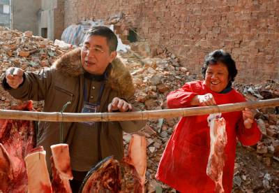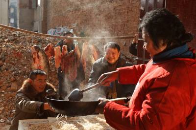春节将至,武汉市新洲区阳逻港区的干部帮助群众准备年货。