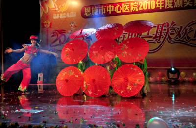 1月22日晚,演员正在表演文艺节目。当晚,恩施市中心医院举行2011年春节职工联欢晚会,医务工作者以小品、歌舞等形式,尽情祝福祖国,喜迎兔年新春。