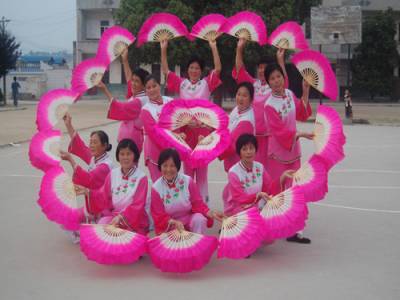 浠水县蔡河中学老年教师秧歌腰鼓队成立于2007年,由退休教师组成,已在当地演出近百场。极大地活跃了当地文化气氛。图为元月24日队员们在排练”花好月圆”节目的情景。