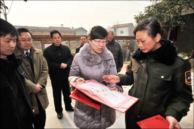 1月24日,襄阳市团市委书记龙小红等人来到南漳县”湖北省见义勇优秀青年”、”2010感动襄阳十大道德模范”李豪家中,看望慰问李豪的妻子伍宗娥(右一)及他的父母,询问他们的生活情况,送上慰问金,感谢老人们培养了一位好儿子。当日,襄阳团市委负责人分别赴南漳、老河口、襄城,看望慰问襄阳市优秀青年典型。