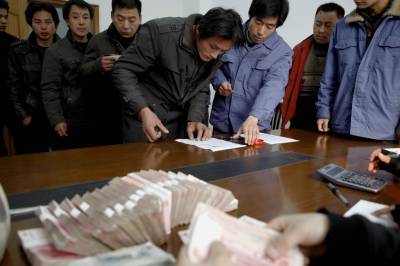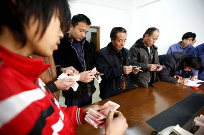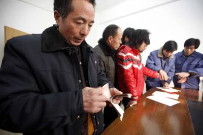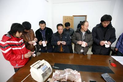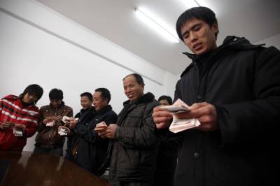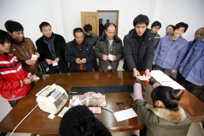 宜昌船厂替”黑心”老板垫付农民工工资2011年1月24日,来宜昌打工的农民清点自己的工资。当天,湖北省长航重工宜昌船厂,替逃跑的黑心老板垫付农民工工资。江苏来该厂承包船舶安装工程的老板,欠下施工人员2010年后3个月的工资逃跑。但是,船厂已按合同如数支付给承包方劳务费。船厂得知后,立即向公安机关报警,同时,筹措30万元,垫付给被拖欠的38名农民工,保证他们回家与亲人团聚。文振效