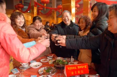 1月23日,在鄂州市领袖1+8小区内,”吃百家年饭,建和谐社区”活动火热开场,平时交流不多的邻里们围坐一桌,把酒言欢,其乐融融。郑博摄