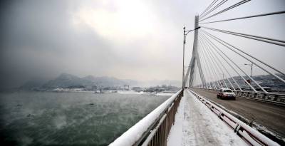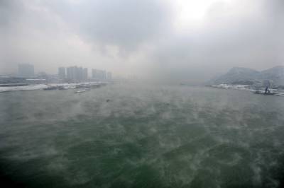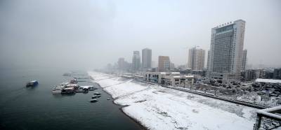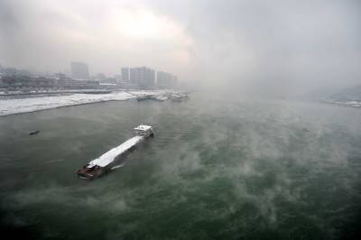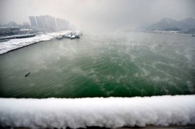 1月20日,雪中宜昌在长江蒸腾的雾气辉映下有着格外的魅力。