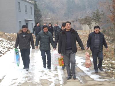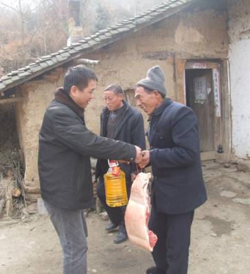 班子成员集体看望慰问结对贫困农户(谢谢编辑老师收阅) 通讯员钱芹报道:为了进一步贯彻落实湖北省丹江口市委、政府两办提出的”牵手新农村、脱贫奔小康”结对共建活动,在春节到来之际,1月24日,湖北省丹江口职业技术学校党总支书记、校长饶克均带领其他5名班子成员驱车110余公里专程到对口共建村——武当山脚下的官山镇全真观村走访慰问贫困党员和贫困户。 在全真观村海拔800米的全真观遗址附近,饶克均一行看望慰问了该村五保户王德春、边圣成、因病致贫的农户余兴海、73岁的贫困党员秦和如。每到一家,校领导们都热情询问他们的家庭、收入情况及年货准备情况,鼓励他们勤奋劳动,发家致富,并送上50斤米、50斤筒子面、10斤肉、10斤油、10斤粉条等慰问物资,送去党的温暖和节日的祝福。 在村委会,饶克均校长将1万元慰问金交到村支书姚启建的手上,用于帮助村委添置部分办公用品,以改善村委会的办公条件。(本报视界网钱芹摄)通联:湖北省丹江口职业技术学校办公室:钱芹邮政:4427010719——552300