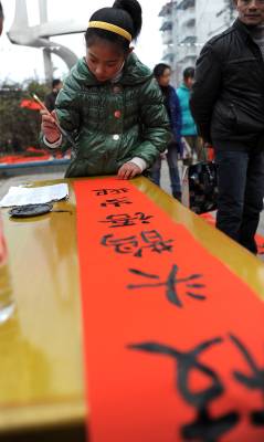25日,宣恩县老、少书法家们聚在一起,根据返乡农民工的需要,现场为他们书写春联1000余幅,为返乡农民工送去新春祝福。本报视界网宋文摄