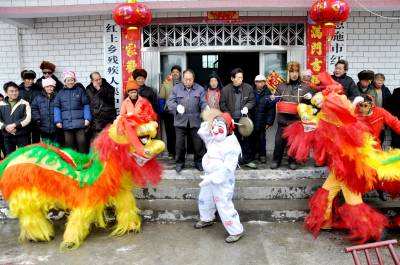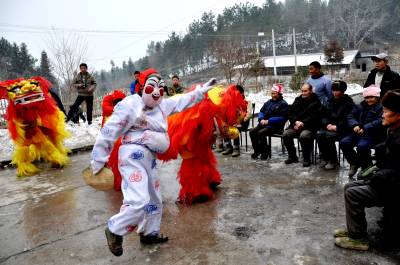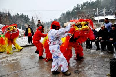 雄狮狂”舞”闹新春1月25日,在恩施市红土福利院的广场上乡文化协会舞狮队正演出传统文艺节目。春节前夕,该市富裕起来的广大农民在当地文化部门大力扶持下,自发成立”乡村民间艺人文化协会”,组建各种文艺演出团体,自筹资金,购置服装道具,免费为群众表演文艺节目,不仅使优秀的民间传统文化得到了传承,又活跃了农村群众文化生活,表达了富裕后的农民欢天喜地迎新春的喜悦心情。(视界网彭绍峰摄)红土乡政府13329820218