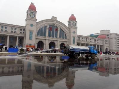 1月25日下午,江汉区汉口火车站综合治理办公室组织环卫车辆和环卫工,为站前广场进行大洗尘,冲冼前段时间移栽花草树木留下扫不干净的泥土,经过冲洗清扫后使站前广场靓起来,迎接小年的到来,迎接春运高峰的到来,让东西南北中旅客,在武汉高兴而来,满意而去。
