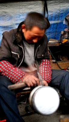 本报视界网签约摄影师颜义众:1月25日,竹溪县城区一修补摊正为人修锅、鞋。年前,修补、宰杀、卖物品等这样一批为别人忙年而忙碌的人们,为忙年提供服务,才使人们过一个幸福、祥和的春节。