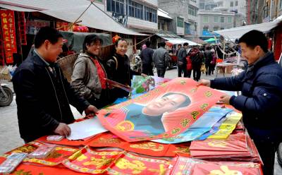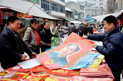 文化年货显现年味渐浓1月26日,恩施市红土乡几位农民正在选购毛主席像,准备张贴到香火台上。春节日益临近,恩施乡村市场内的灯笼、红年画、毛主席像、春联等文化年货摆满了商铺,吸引了众多市民选购,再加上农村特有的憨厚朴实,显得与繁华的城市不同,渐渐显现出浓浓的年味。(视界网彭绍峰摄)红土乡政府13329820218