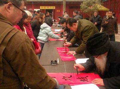 图文:应城书画家”迎新春义务书写春联”活动走进孔庙